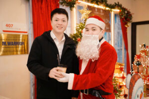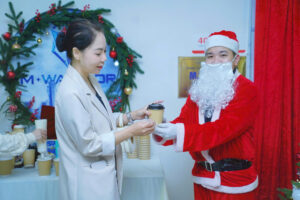 Những ly cacao bốc hơi nghi ngút không chỉ giúp xua tan cái lạnh mùa đông mà còn trở thành cầu nối cho những câu chuyện đầu ngày thêm phần rộn rã. Tiếng cười nói xen lẫn không khí trang trí Giáng sinh lung linh tại văn phòng đã tạo nên một khung cảnh ấm cúng, giúp mọi người nạp đầy năng lượng cho những dự án cuối năm.