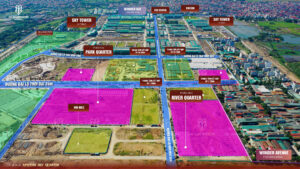 Vị trí Lõi: Nằm trên trục Đường Đại Lộ Thời Đại 24m, tọa lạc giữa hai phân khu thấp tầng sầm uất là Park Quarter và River Quarter.