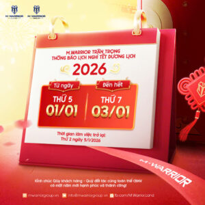 Căn cứ theo tinh thần khuyến khích của Bộ Nội vụ về việc áp dụng thời gian nghỉ Tết Dương lịch năm 2026 và nhằm tạo điều kiện cho đội ngũ CBNV có một kỳ nghỉ ý nghĩa bên gia đình, M.Warrior trân trọng thông báo lịch nghỉ lễ cụ thể như sau: